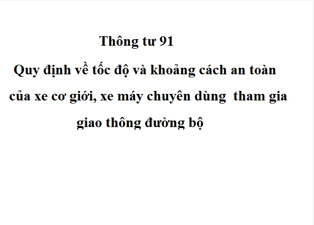 Thông tư 91: quy định về tốc độ và khoảng cách an toàn của xe cơ giới, xe máy chuyên dùng tham gia giao thông đường bộ